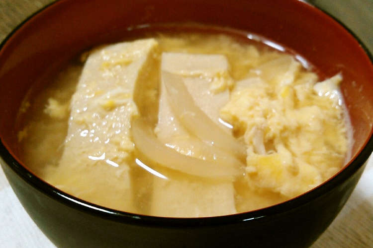 高野豆腐 玉ねぎ 玉子のお味噌汁 レシピ 作り方 By 熊八 クックパッド 簡単おいしいみんなのレシピが375万品